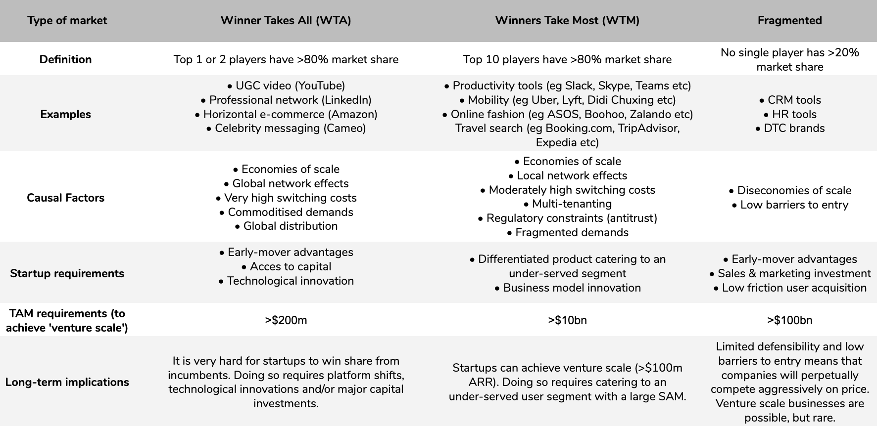 Not all market structures are born equal. Founders and VCs should always identify which of the three market structures their company is operating in.